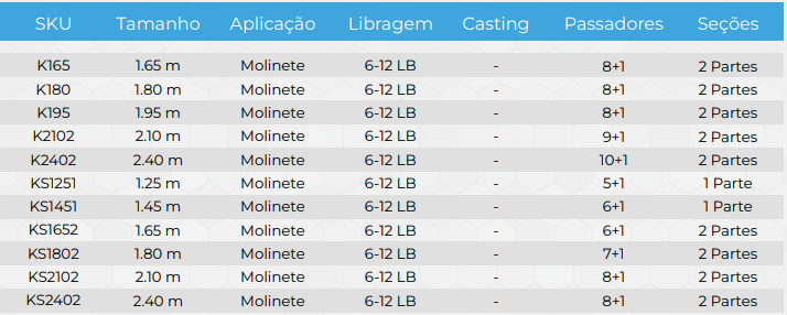 Também em versão 2 Partes, é equipada com passadores Neo-Aluminium de óxido de alumínio para um deslize suave da linha, um Reel Seat em Nylon Reforçado para fixação segura da carretilha, e um Butt Cap em ABS que protege o equipamento contra danos, a vara KRATON CAST é a escolha ideal para pescadores que valorizam qualidade e eficiência em cada pesca.